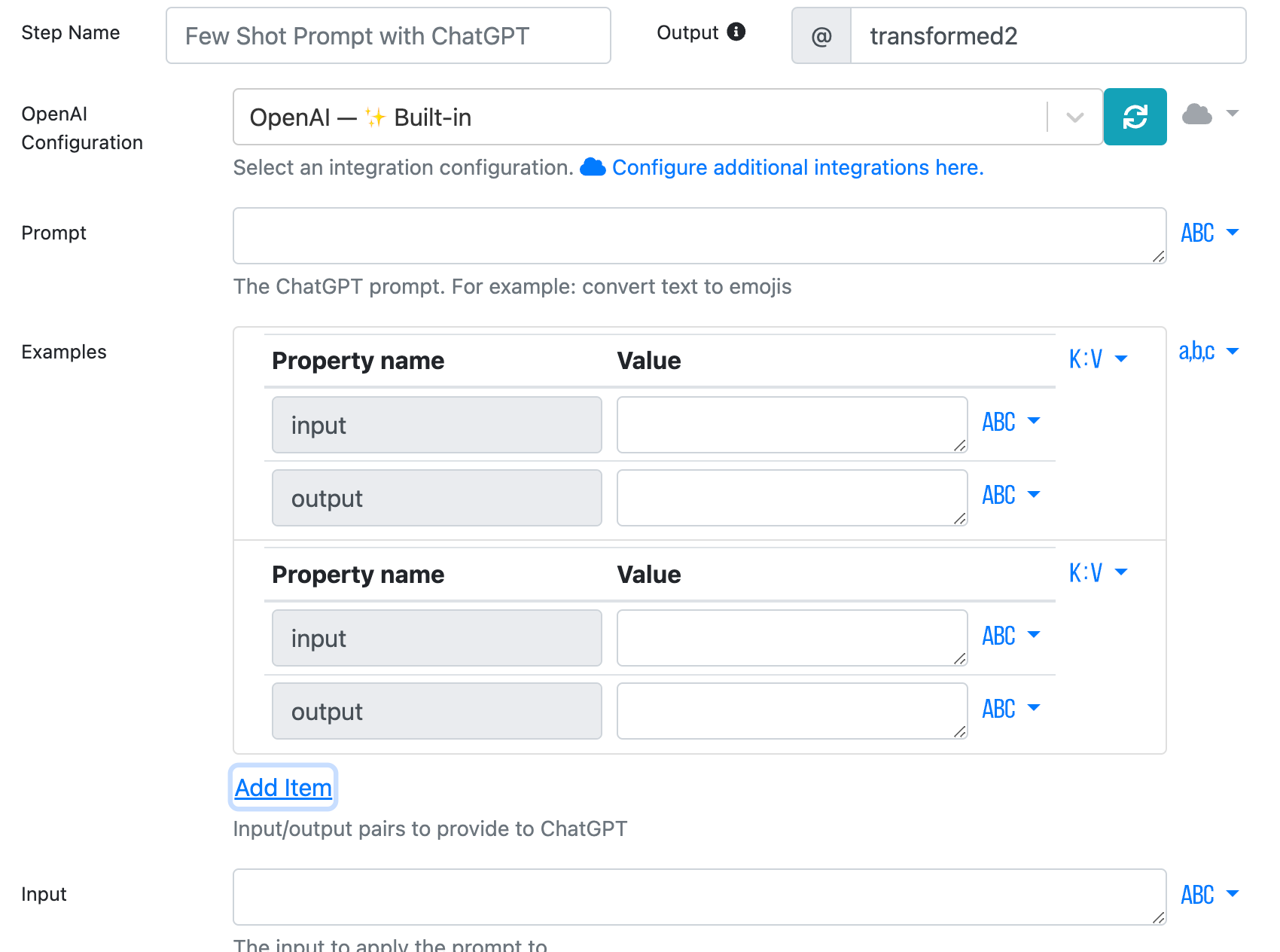 * **OpenAI Configuration**: use our built-in one, or [add your own OpenAI integration](https://docs.pixiebrix.com/integrations/openai-chatgpt)