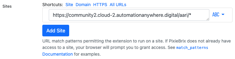 Therefore, to control which mods/AARI pages the mod runs on use a Sites rule with an Advanced: Match Rules > URL Patterns rule