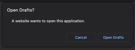 2. In the prompt, enter the following with the URL scheme for the application you're using. For example, the [Drafts](https://docs.getdrafts.com/docs/automation/urlschemes) URL scheme is `drafts://`, so we'd enter: