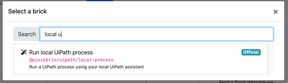 Since Release 2.1.6, the "Run local UiPath process" brick is only available on Enterprise plans.