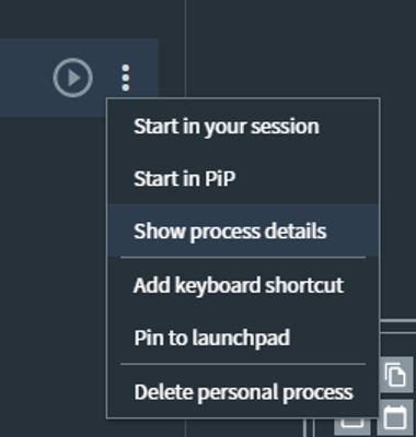 In the UiPath Assistant, select "Show process details" from the dropdown menu next to the process
