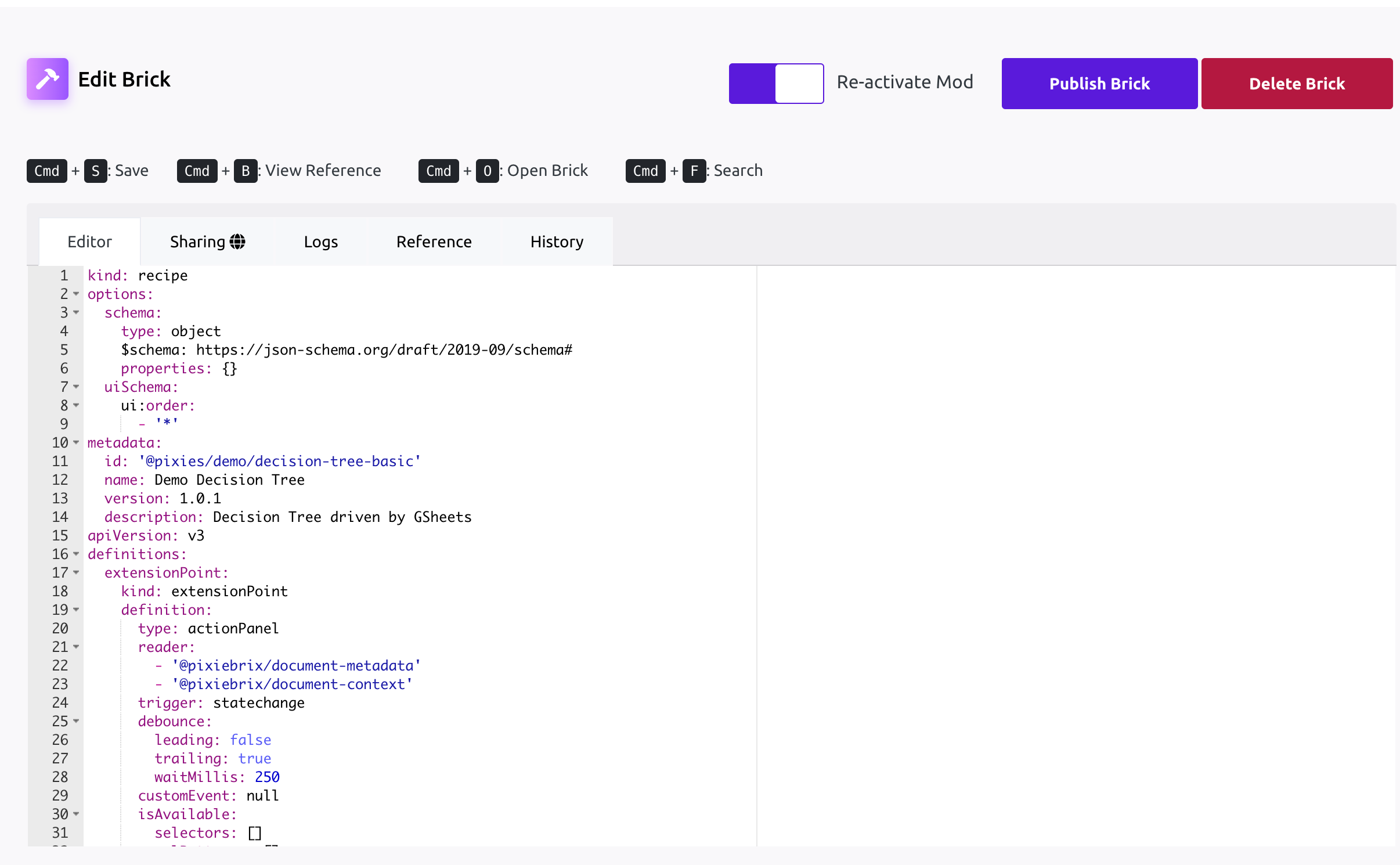 At the core, each PixieBrix mod (and brick) is really a YAML file that details a mod's composition. In the workshop, you can view a mod's YAML file and edit as you see fit.